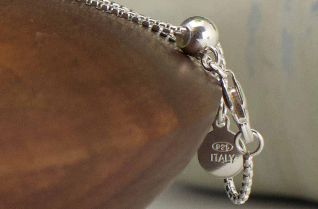 Sterling silver findings and chain.